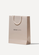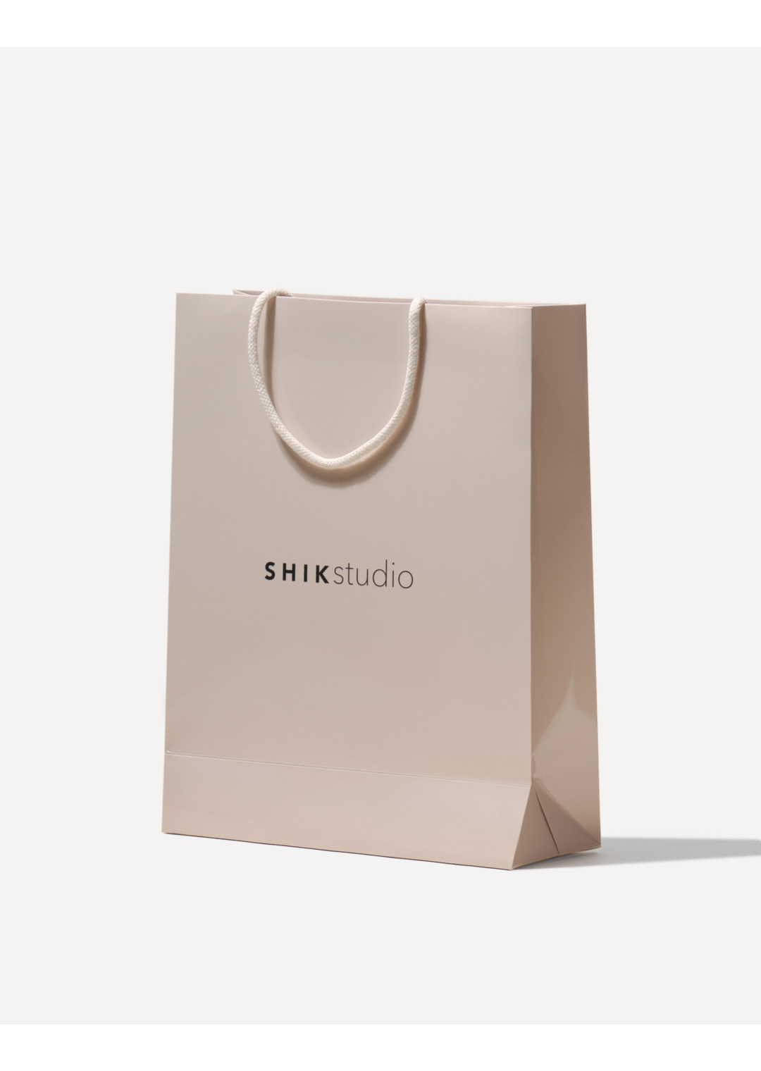 Стильный подарочный пакет, выполненный в лаконичном светло-пудровом дизайне бренда SHIKstudio.